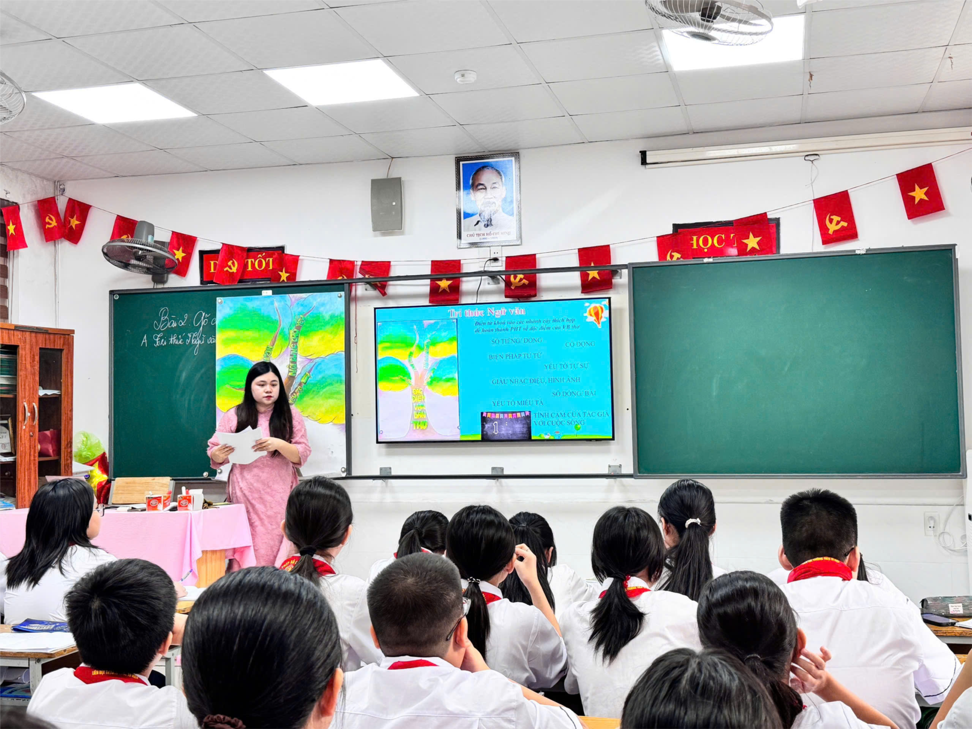 Tiết dạy do cô Bùi Minh Huế – giáo viên Ngữ văn thực hiện. Trong không khí học tập sôi nổi, cô và trò đã cùng nhau khám phá đặc trưng của thể thơ 5 chữ, tìm hiểu ý nghĩa nhân văn sâu sắc trong tác phẩm của nhà thơ Xuân Quỳnh. Qua đó, học sinh được rèn luyện các kĩ năng đọc hiểu, cảm thụ thơ ca, phát huy tư duy sáng tạo và tình yêu với môn Ngữ văn. Tiết dạy chuyên đề không chỉ là dịp để giáo viên trao đổi chuyên môn, chia sẻ phương pháp dạy học tích cực, mà còn góp phần lan tỏa tinh thần đổi mới – sáng tạo trong giảng dạy, hướng tới nâng cao chất lượng giáo dục toàn diện cho học sinh.
