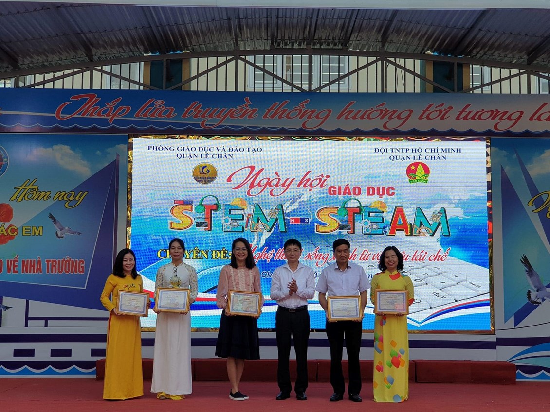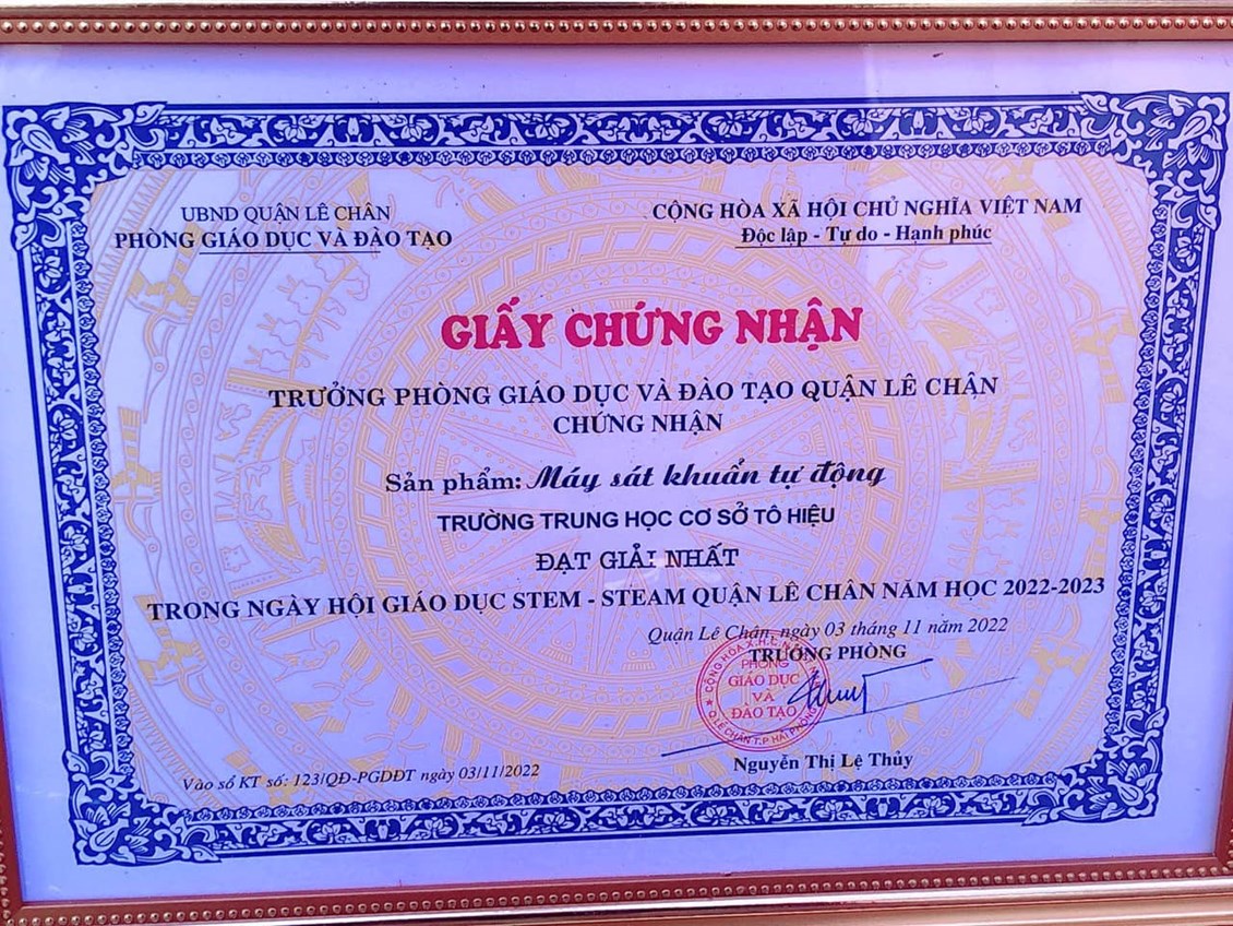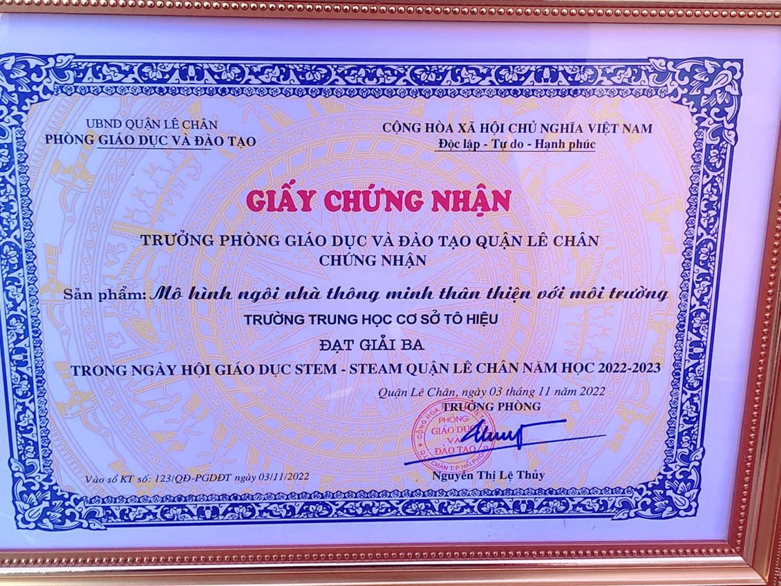 Ngày 2,3/11/2022, Phòng GD&ĐT quận Lê Chân long trọng tổ chức Ngày hội Giáo dục STEM - STEAM với chuyên đề: Nghệ thuật sống xanh từ vật liệu tái chế. Hưởng ứng ngày hội này, các em học sinh trong Câu lạc bộ STEM của trường THCS Tô Hiệu rất hào hứng. Các em đã thể hiện sự hăng say tìm tòi khám phá cùng sự thông minh sáng tạo qua những sản phẩm được tận dụng từ những vật dụng nhỏ, tái chế, thân thiện với môi trường.