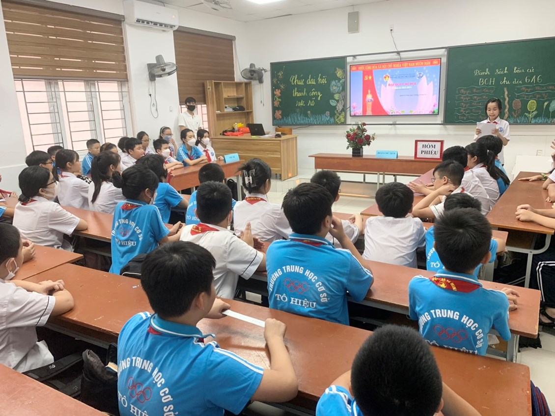 Thực hiện chương trình công tác Đội và phong trào Thiếu nhi năm học 2023-2024, trong không khí vui tươi phấn khởi của những ngày đầu năm học mới, hướng tới chào mừng Đại Hội Đoàn các cấp, Đại hội Liên Đội, trong các ngày từ 05-07/10/2023, tại trường THCS Tô Hiệu đã diễn ra Đại hội Chi đội của 44 /44 lớp. Đại hội Chi đội nhằm bầu ra Ban chấp hành Chi đội nhiệm kì mới với những gương mặt Đội viên tiêu biểu, gương mẫu, nhiệt tình, trách nhiệm, có khả năng lãnh đạo, tổ chức, quản lý,.... cùng đoàn kết đưa phong trào Đội của tập thể lớp đi lên.