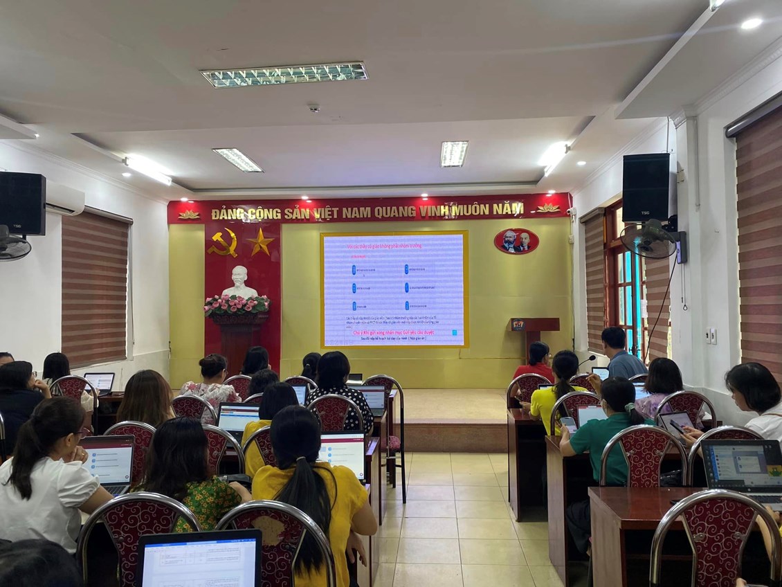 Công nghệ thông tin (CNTT) với những ưu thế vượt trội đã đi vào tất cả các lĩnh vực trong đời sống. Đối với giáo dục và đào tạo, CNTT đóng một vai trò to lớn, có tác động mạnh mẽ làm thay đổi nội dung, phương pháp, phương thức dạy và học. Với mục đích trang bị cho cán bộ, giáo viên những kiến thức cơ bản và những kỹ năng cần thiết để phục vụ cho chuyên môn ngay từ đầu năm học, sáng ngày 24/8/2023 trường THCS Tô Hiệu đã tổ chức buổi tập huấn CNTT cho cán bộ, giáo viên toàn trường.